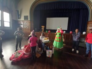 This Christmas, FMC Wayne County held our 1st annual adoptive family event. We collectively selected one of the schools FMC services and picked a family to sponsor for Christmas. We gifted the family with some great gifts, served food, and played some games for prizes. Provider Matthew Allen posed as Santa, and Support coordinator Tierney Byrd was our elf. The staff participated as a team to put this event together, and it was a wonderful experience. BH Support Coordinator Supervisor Benita Johnson provided catered food that was delicious. Our department Supervisor Phil welcomed the family and participated in all games. The mother, Ms. Farrington from Mackenzie Elementary, was crying tears of joy as she just moved her and her family into a home after a struggle with homelessness for some time. Attached are some pictures that captured all the joy-filled activities.